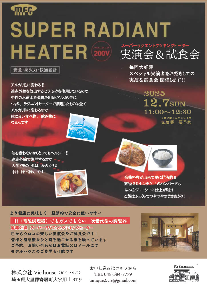 スーパーラジエントヒーターの実演会&試食会のお知らせ